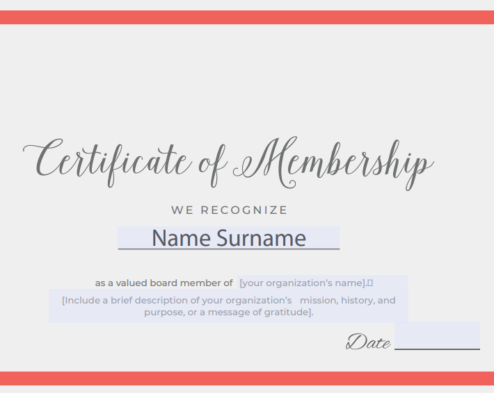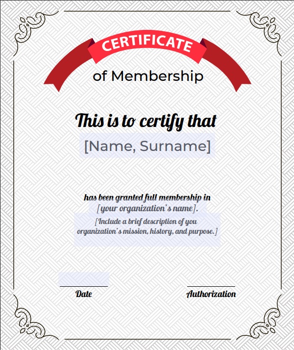 A certificate of LLC membership template is a professional certificate that is awarded by an LLC company to its official members to identify them as members. Generally, it is not compulsory for limited liability companies to issue these certificates to their members. However, when they issue these certificates, they come with additional benefits. For this purpose, these certificates must be signed by the secretary or director of the company. Moreover, all the records of members should be available and updated on a regular basis to make sure all memberships avail all the benefits which a company wishes to provide. This way, an LLC company can boost the reputation of the company in a better way. Usually, all the members of an LLC company are also the stakeholders, and they really wish to promote their company. When a member wishes to leave the membership or wishes to transfer it to someone else, then the company is bound to confirm the membership change through issuing a new certificate.